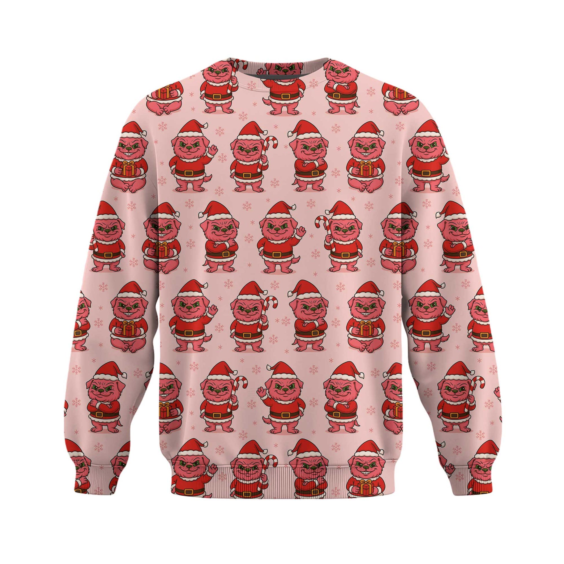 Funny Pattern Pug Shirt, Adorable Pink Grinch Xmas Hoodie, Christmas Pug Shirt For Dog Lover