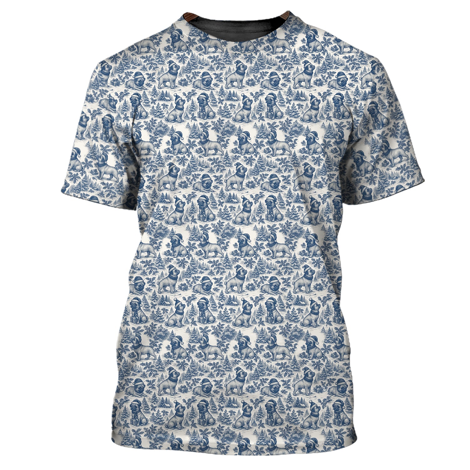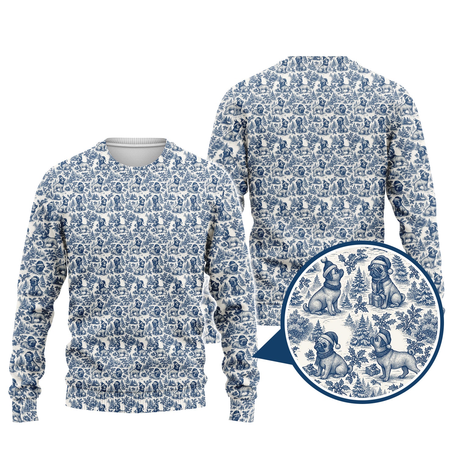 Christmas Pug Pattern Shirt, Toile De Jouy Shirt With Cute Pug, Xmas Hoodie For Dog Lover