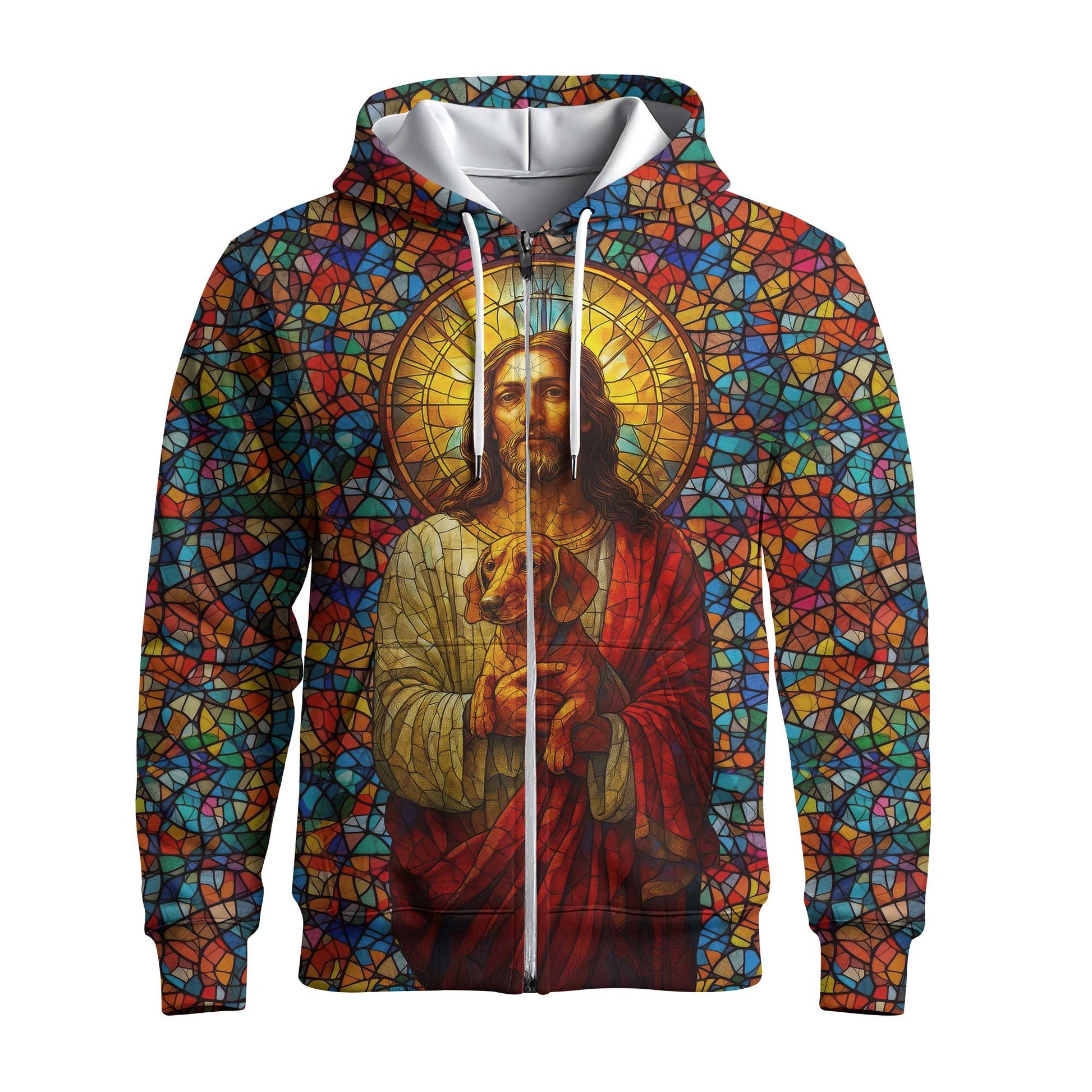 Colorful Stained Glass Jesus Hoodie, Dachshund Shirt, Wiener Dog T Shirt