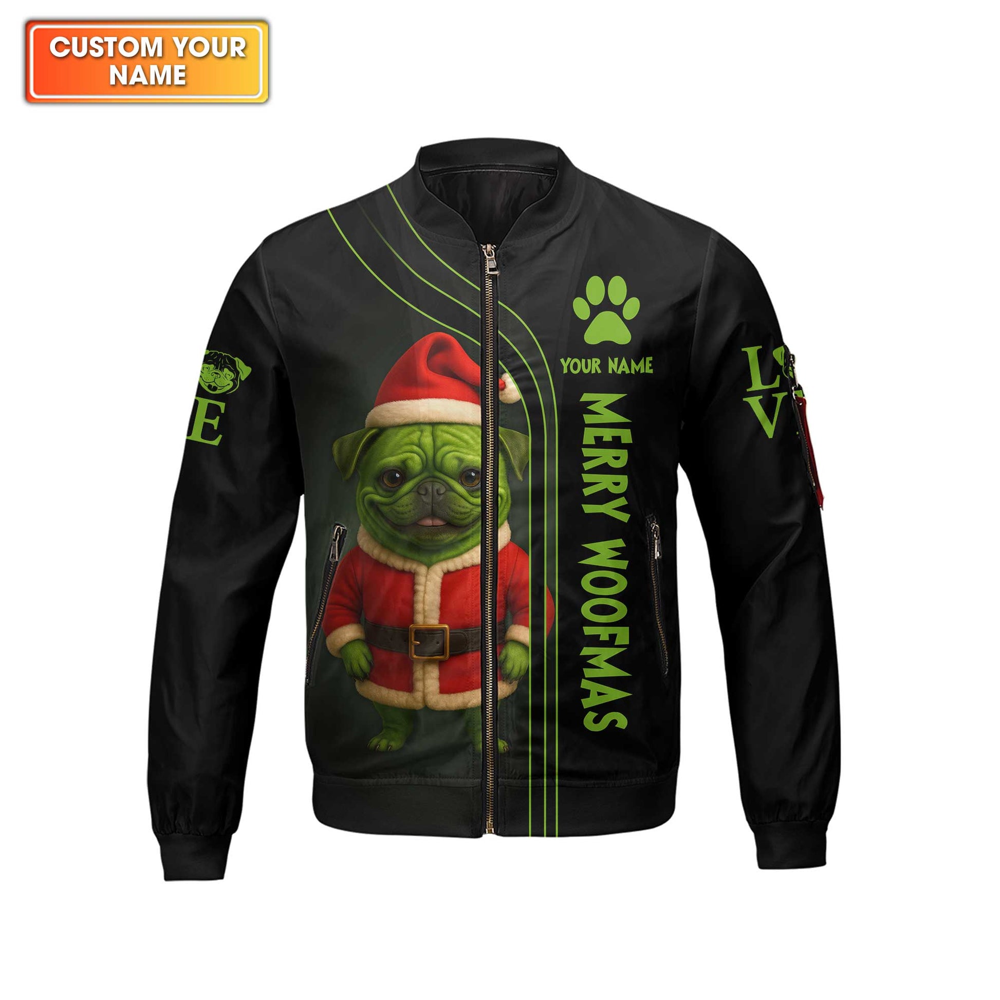 Custom Name Pug Christmas Shirt, Funny Merry Woofmas Shirt, Personalized Pug Xmas Hoodie For Dog Lover,