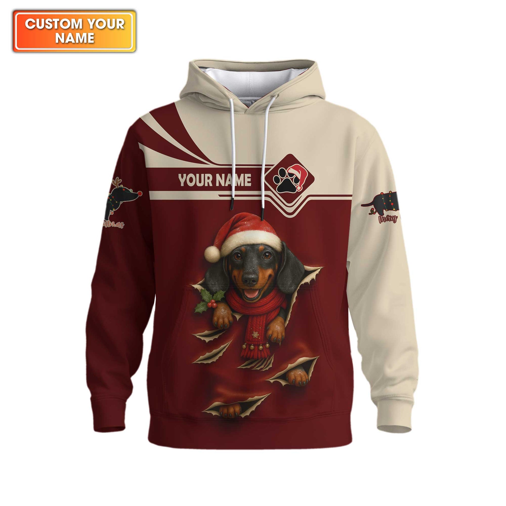 Festive Dachshund Breakthrough Hoodie, Personalized Dachshund Shirt, Wiener Dog T Shirt