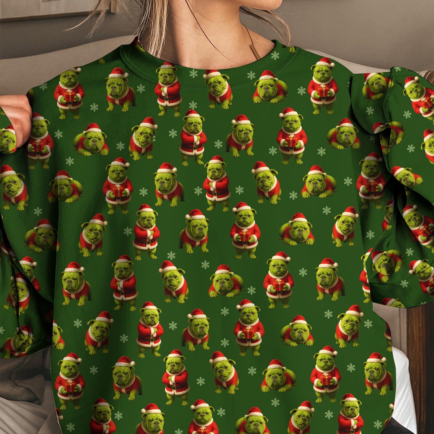 Bring some festive fun to your holidays with this Funny Green Pug Christmas Hoodie! Featuring a hilarious grumpy pug dressed as Santa on a green background, this cozy shirt is the perfect mix of humor and holiday spirit.