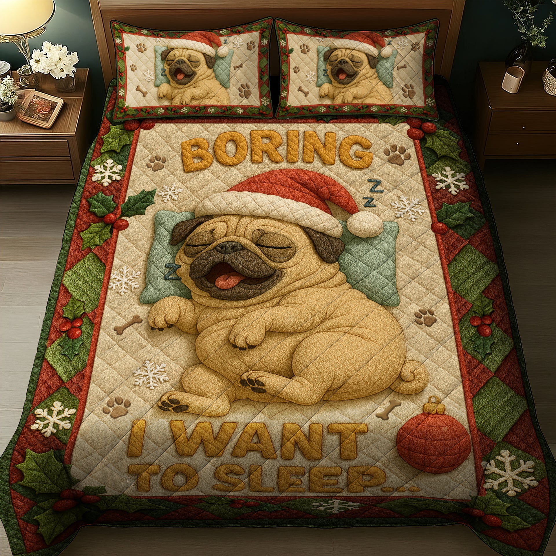 Funny Pug Christmas Quilt Set, Cute Christmas Bedding Gift for Dog Lovers, Pugmas Bedroom Decor