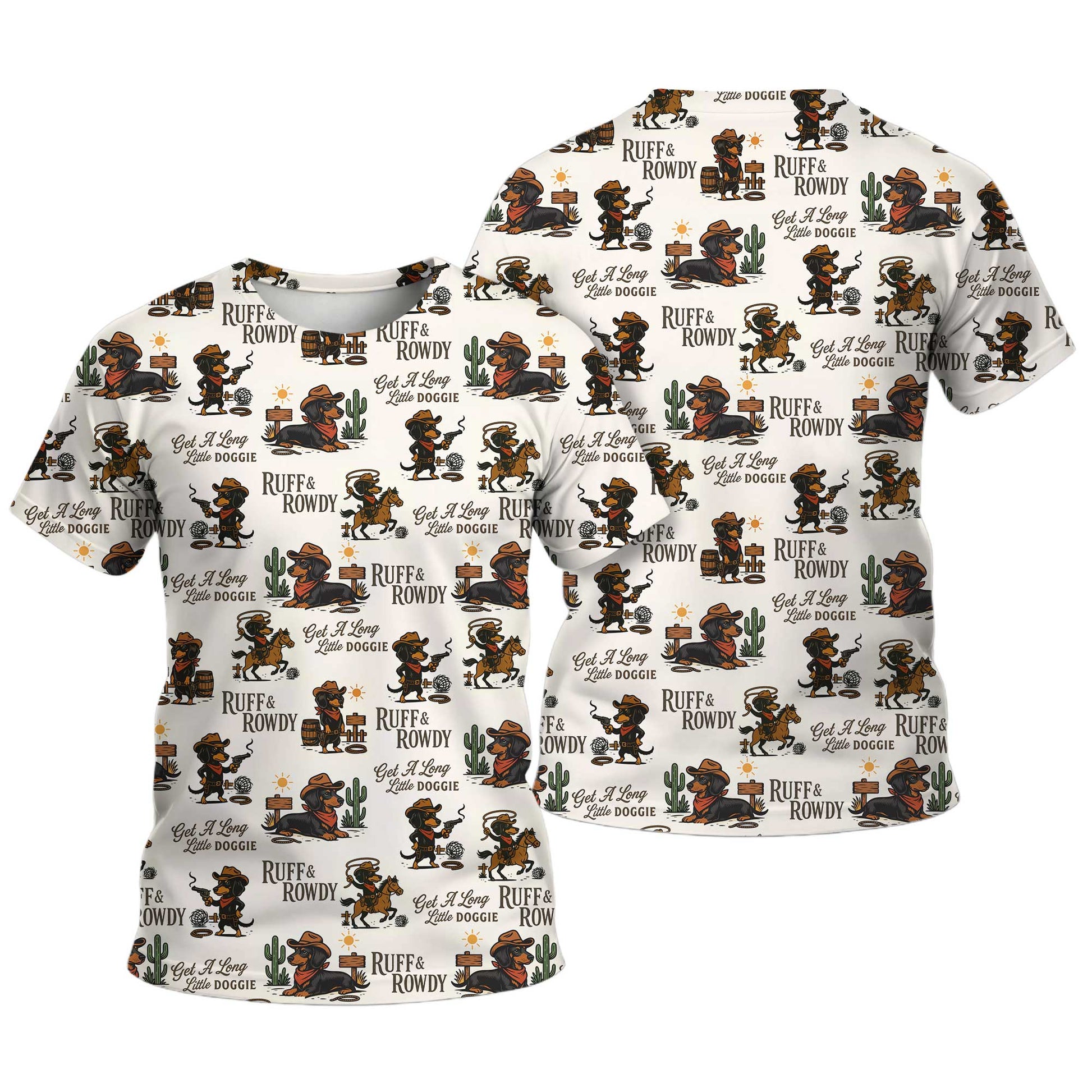 Get A Long Little Doggie Vintage Dachshund Shirt, Western Cowboy Dachshund Pattern Polo, Dachshund T Shirt, Wiener Dog T Shirt
