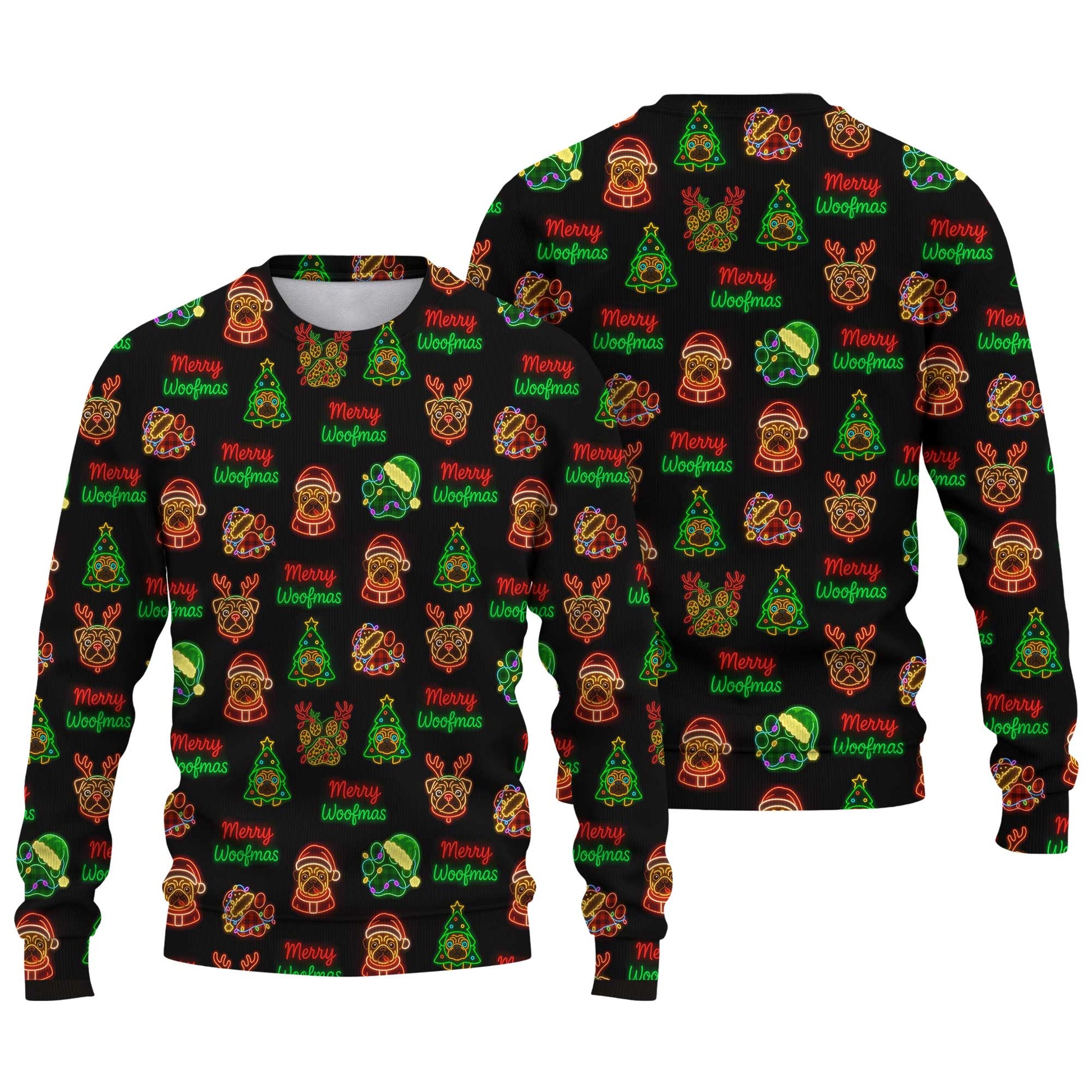 Neon Merry Woofmas Pug Christmas Pattern Polo, Funny Pug Shirt, Pug T Shirt