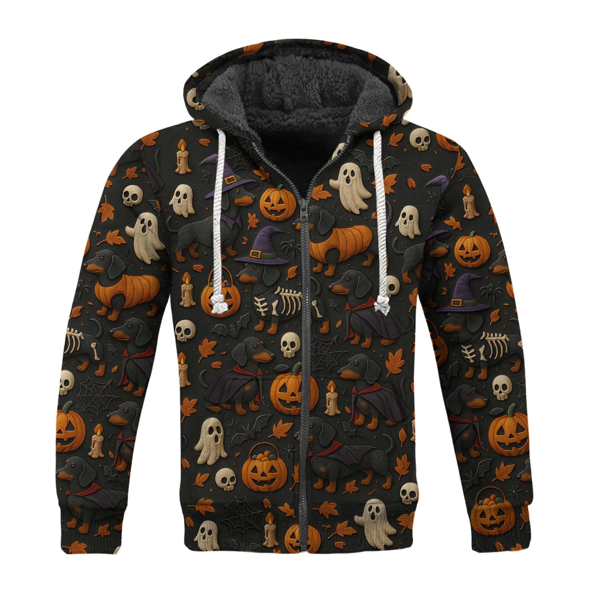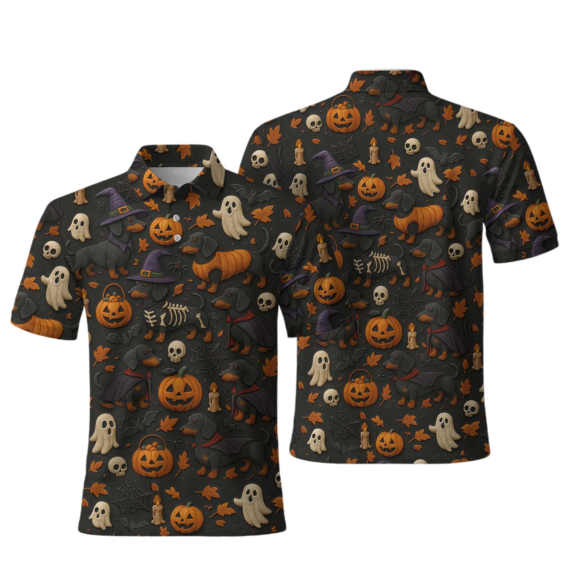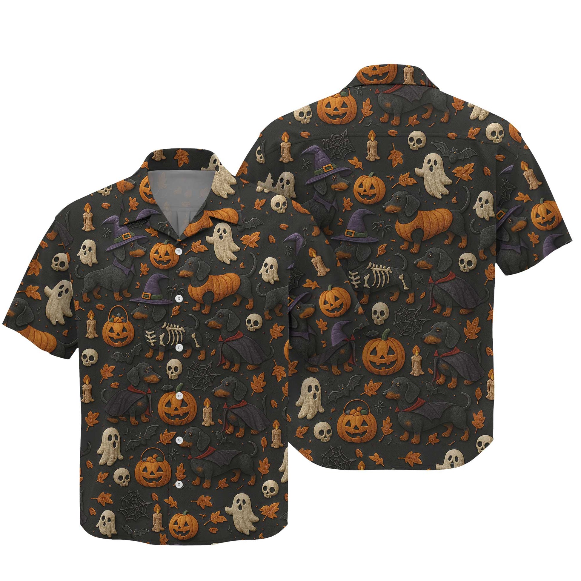Pattern Dachshund Shirt, Halloween Dog Shirt, Pumpkin Ghost Skeleton Black Shirt