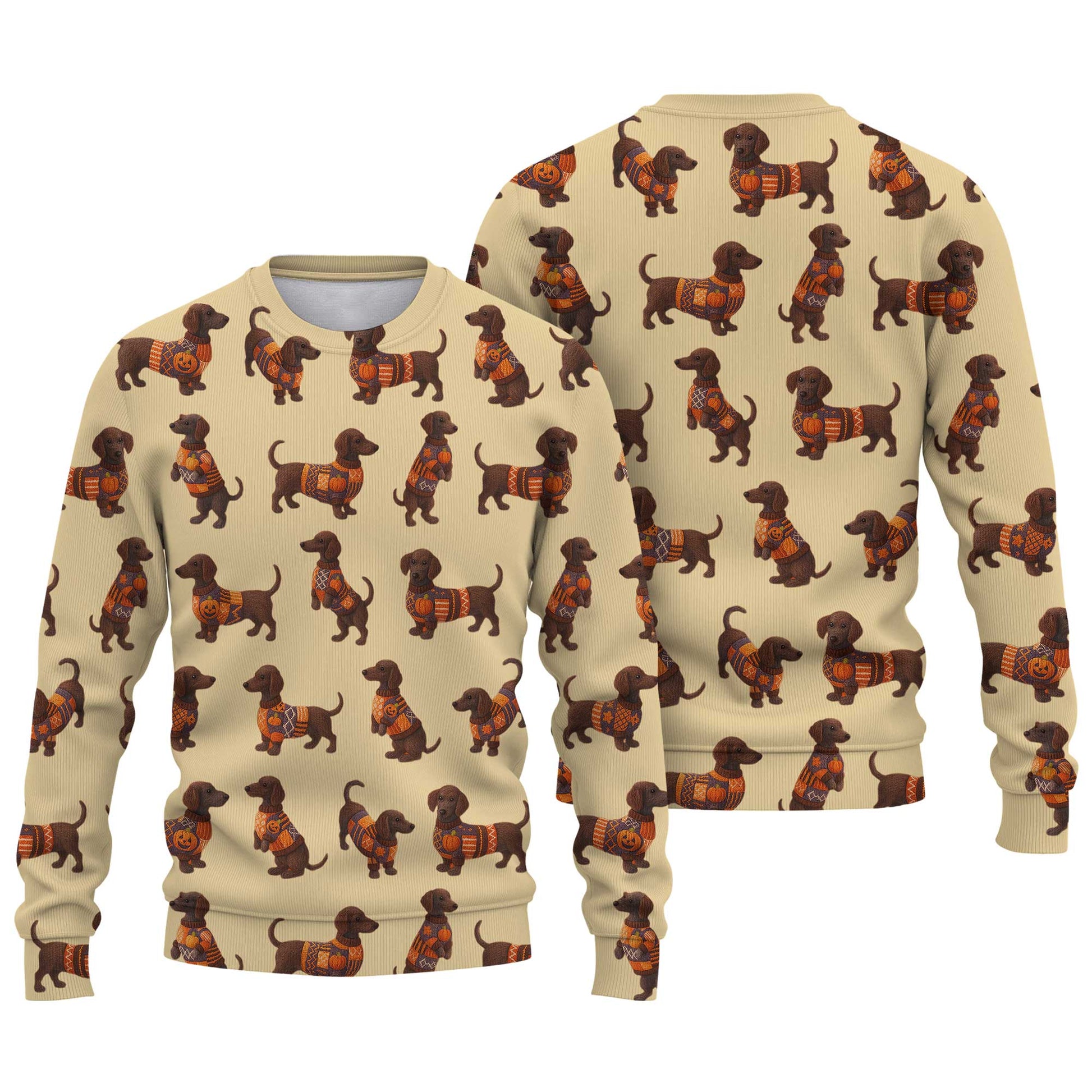 Pattern Dachshund Shirt With Pumpkin Sweater Design, Dachshund Halloween Shirt, Christmas Dachshund Shirt