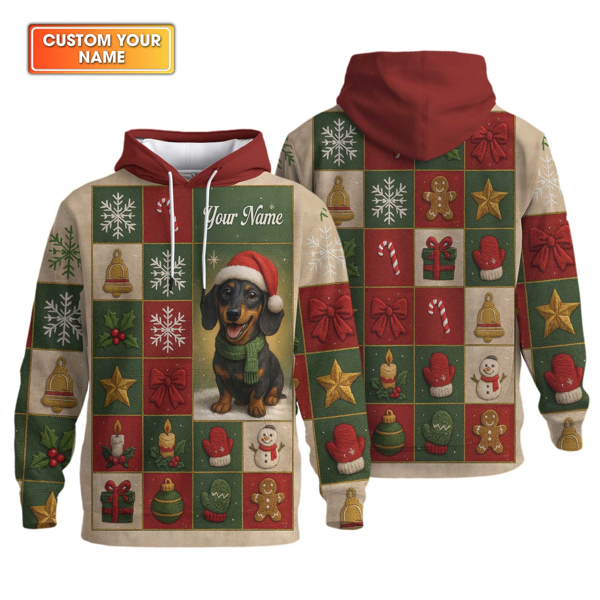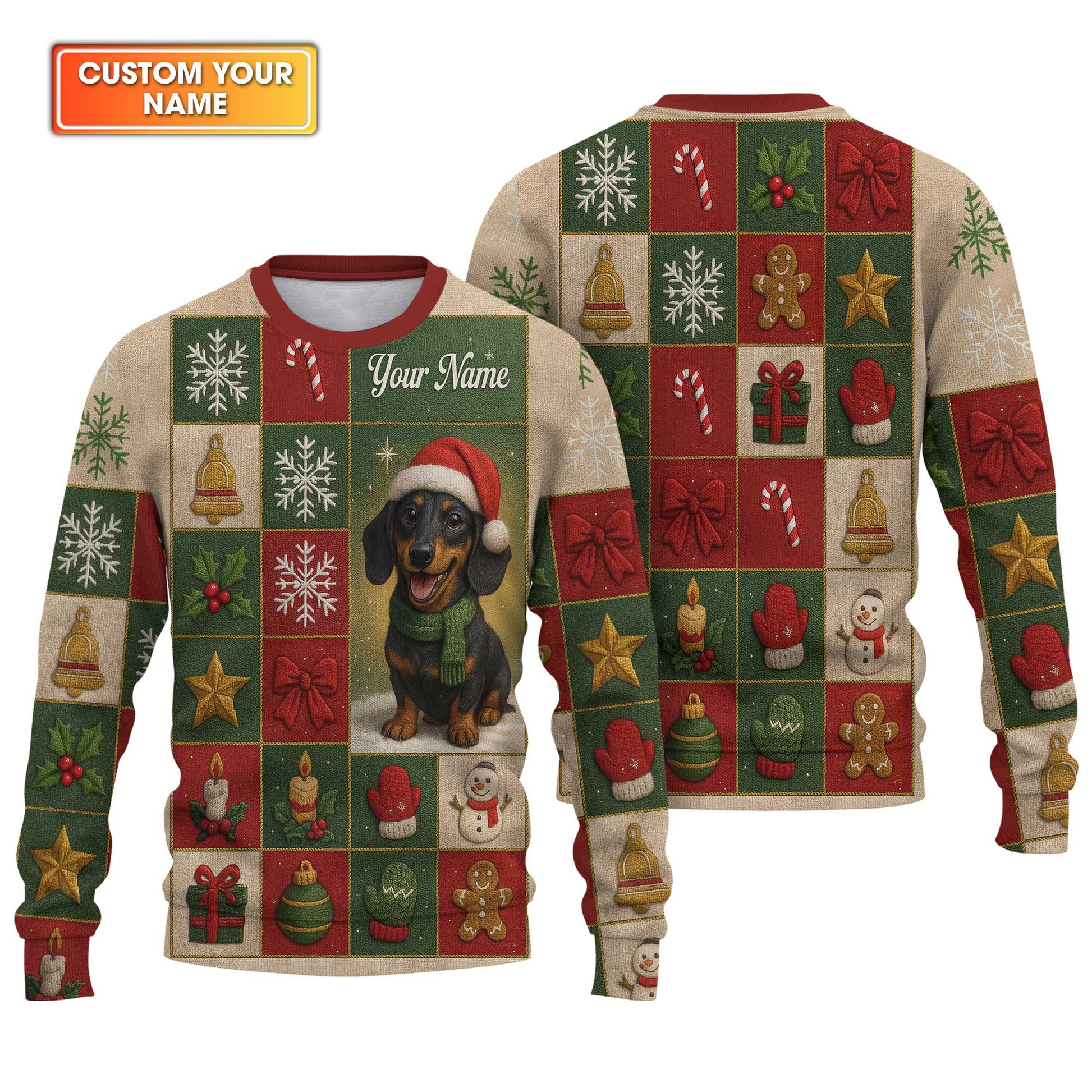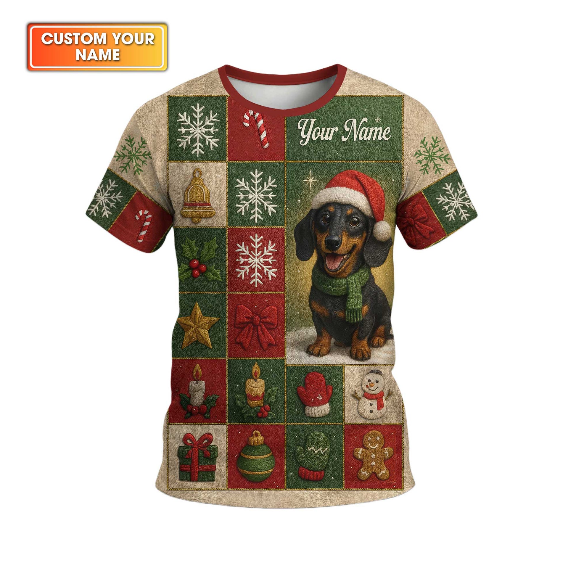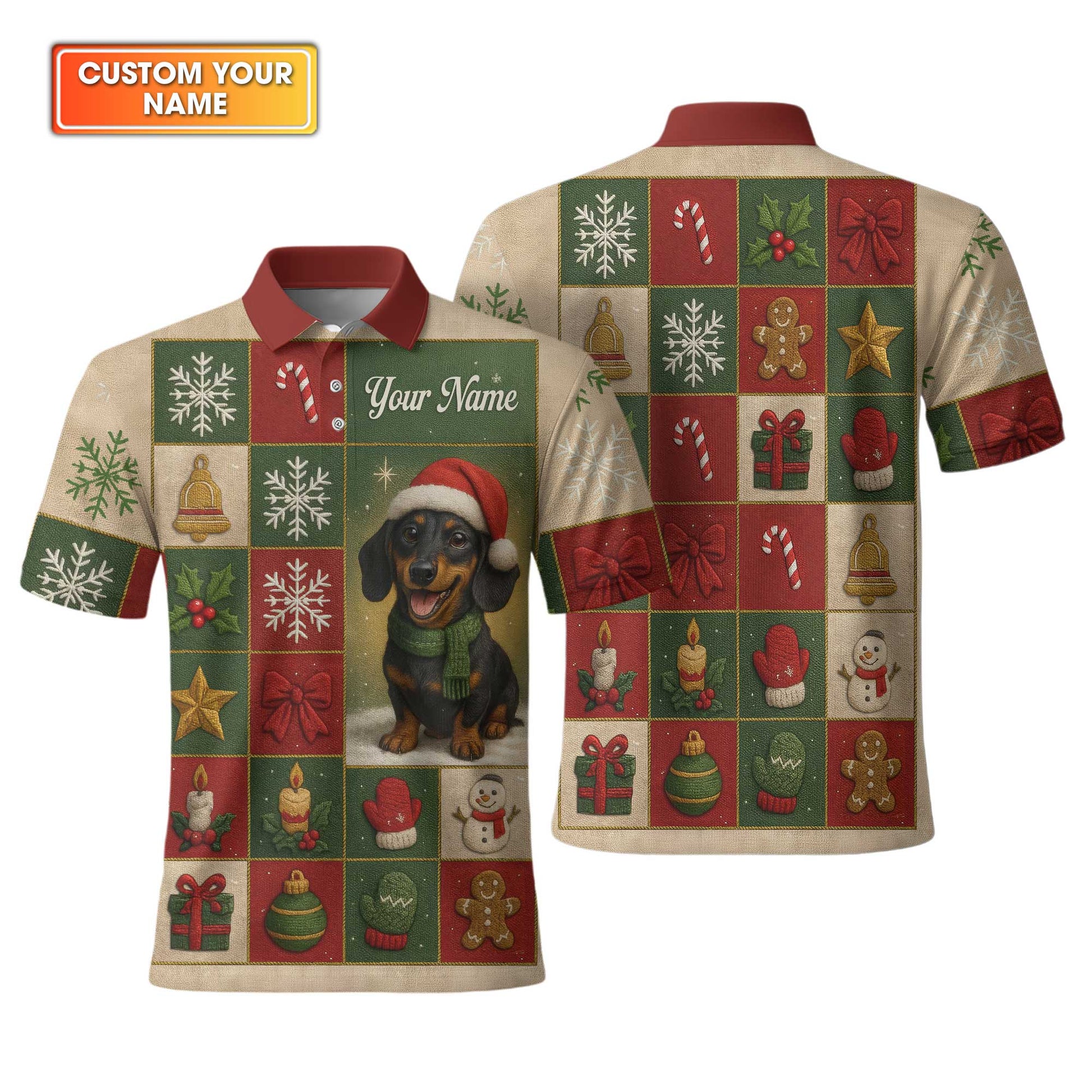 Personalized Name Wiener Dog T Shirt, Dachshund Sweatshirt, Happy Christmas Dachshund Pattern Polo