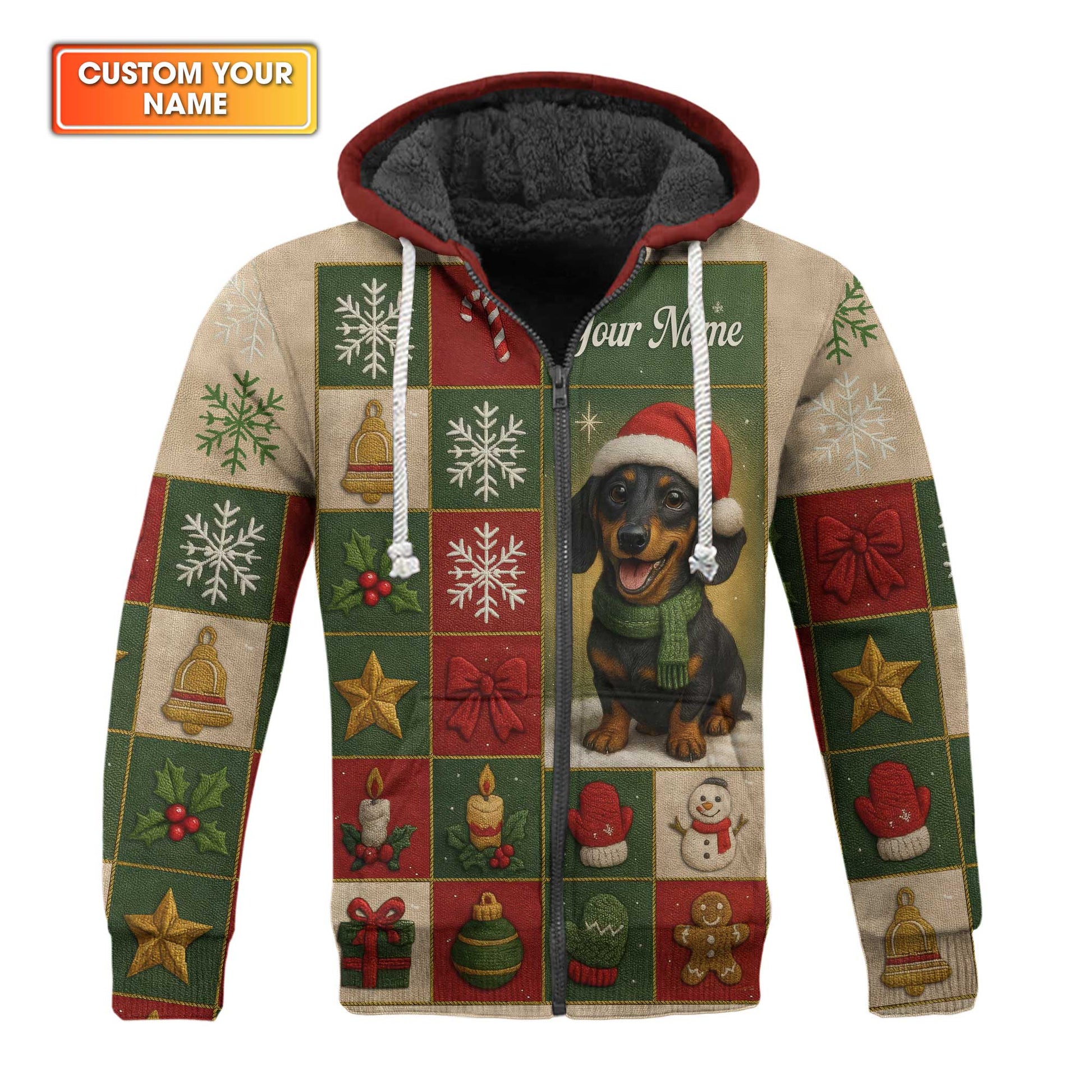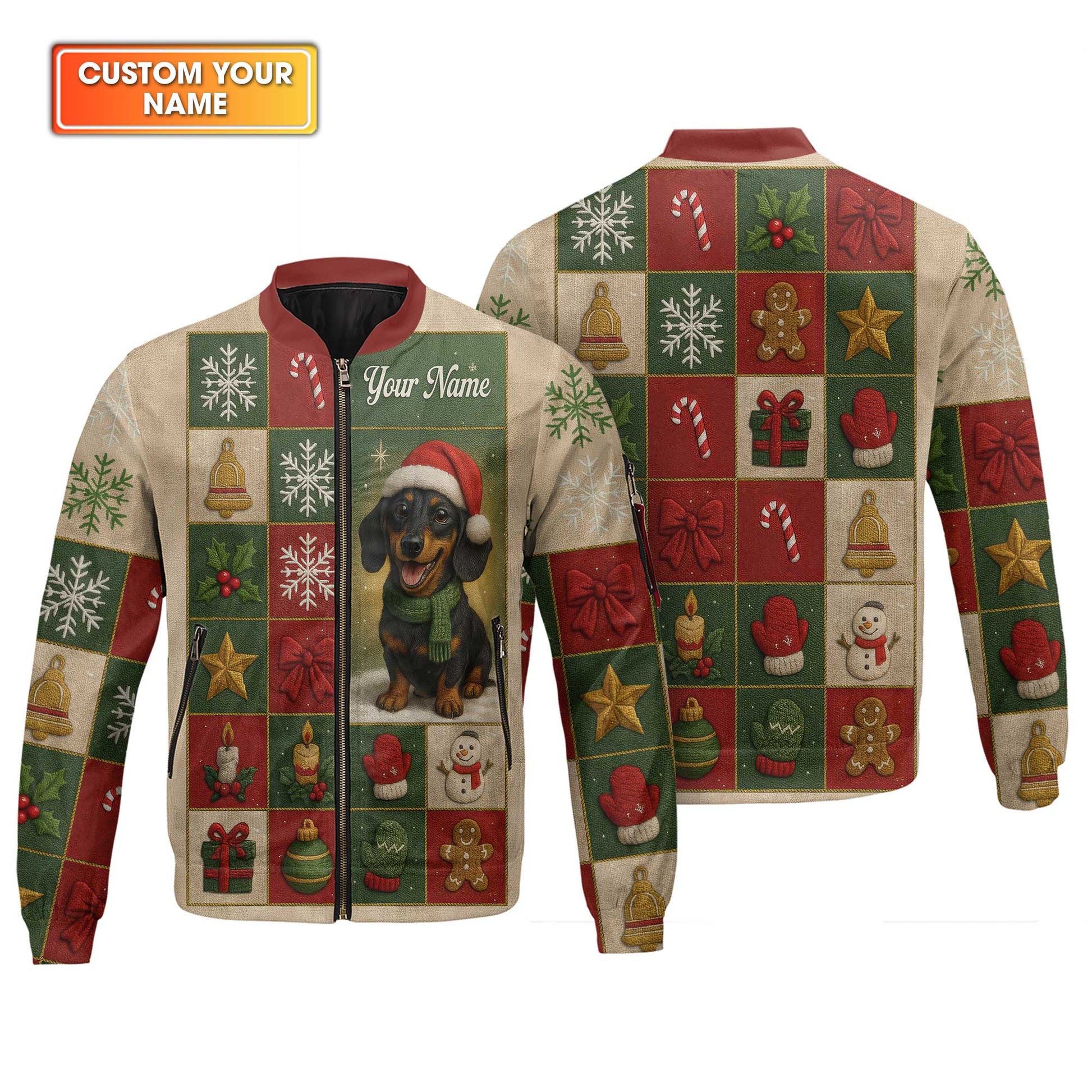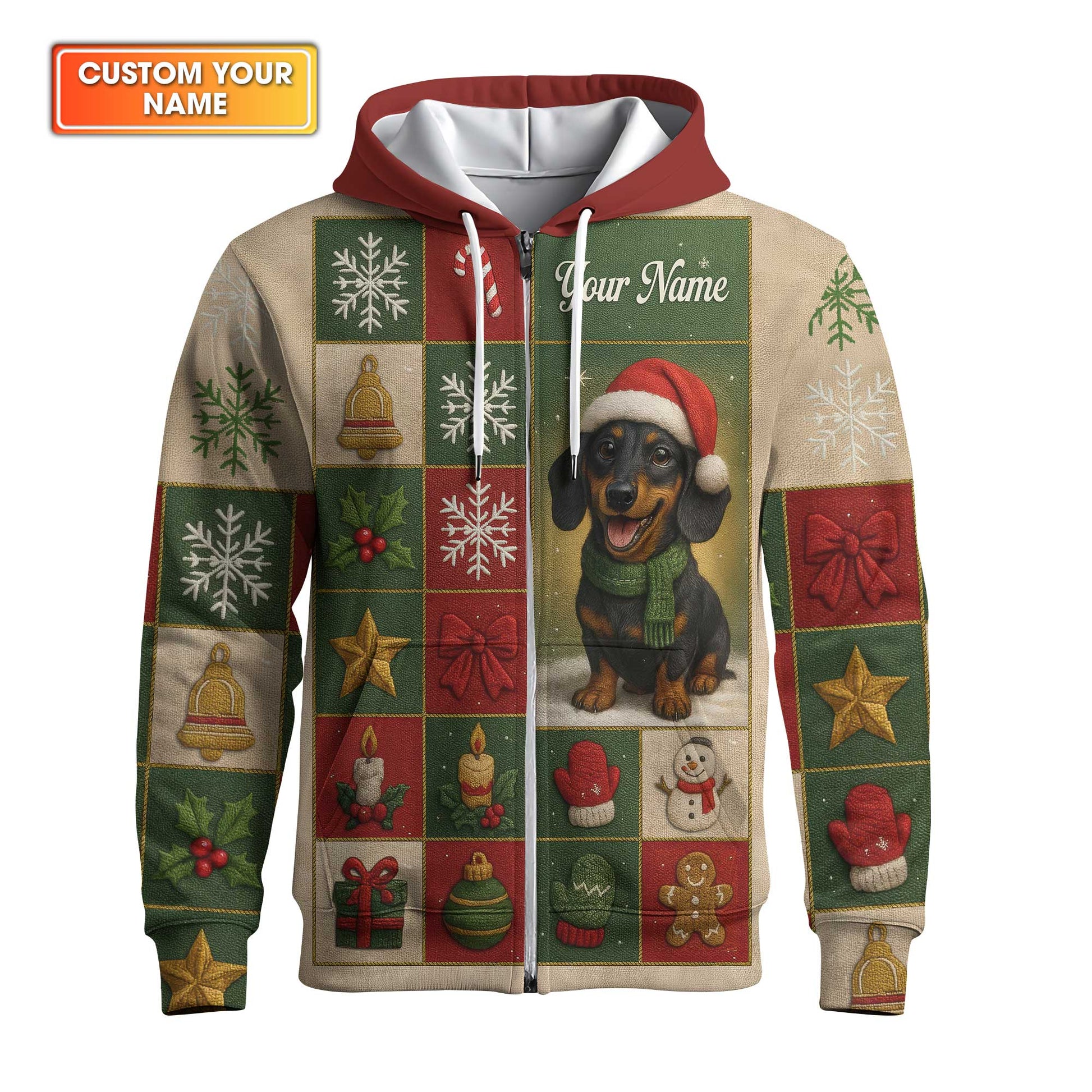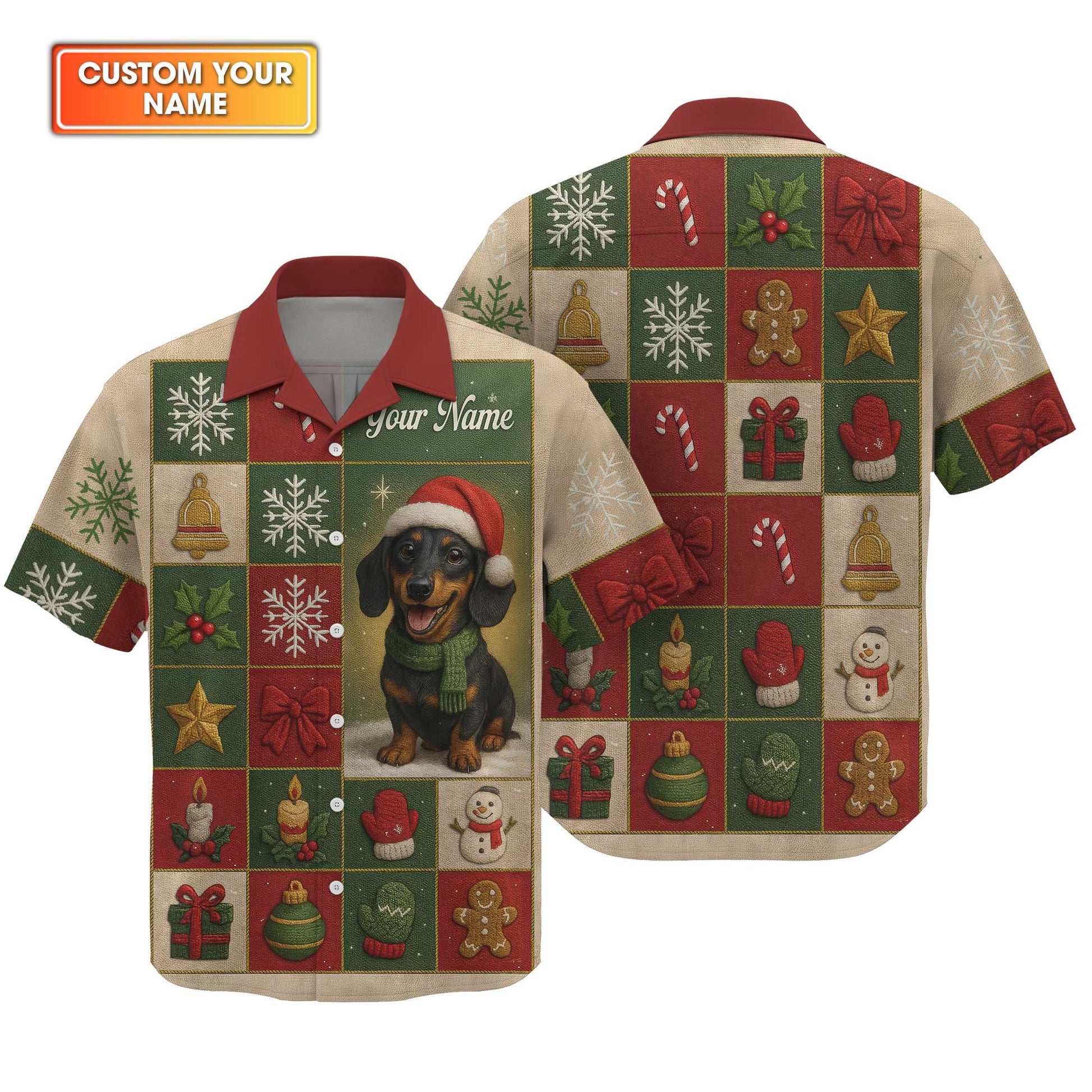 Personalized Name Wiener Dog T Shirt, Dachshund Sweatshirt, Happy Christmas Dachshund Pattern Polo