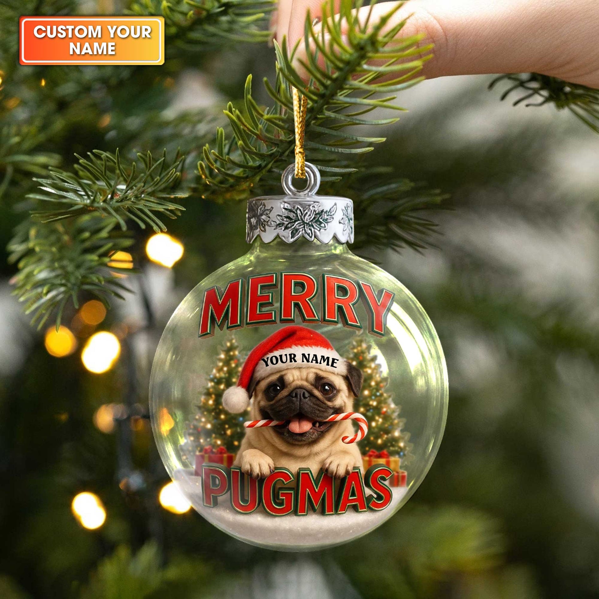 Personalized Pug Christmas Ornament, Custom Name Merry Pugmas Dog Ornament, Funny Pug Xmas Gift for Dog Lovers