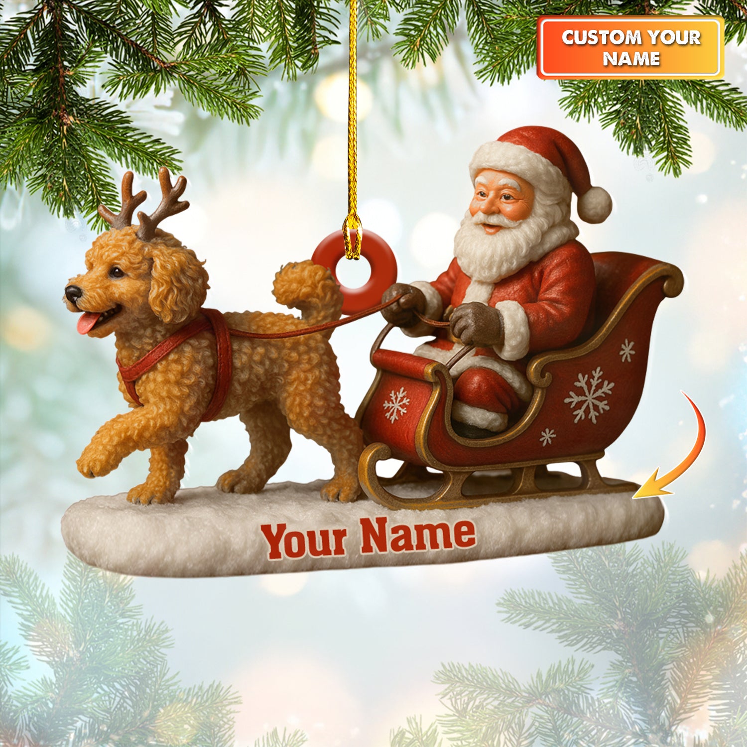 Personalized Santa With Poodle Christmas Ornament, Custom Name Poodle Ornament, Funny Pet Xmas Gift For Dog Lover