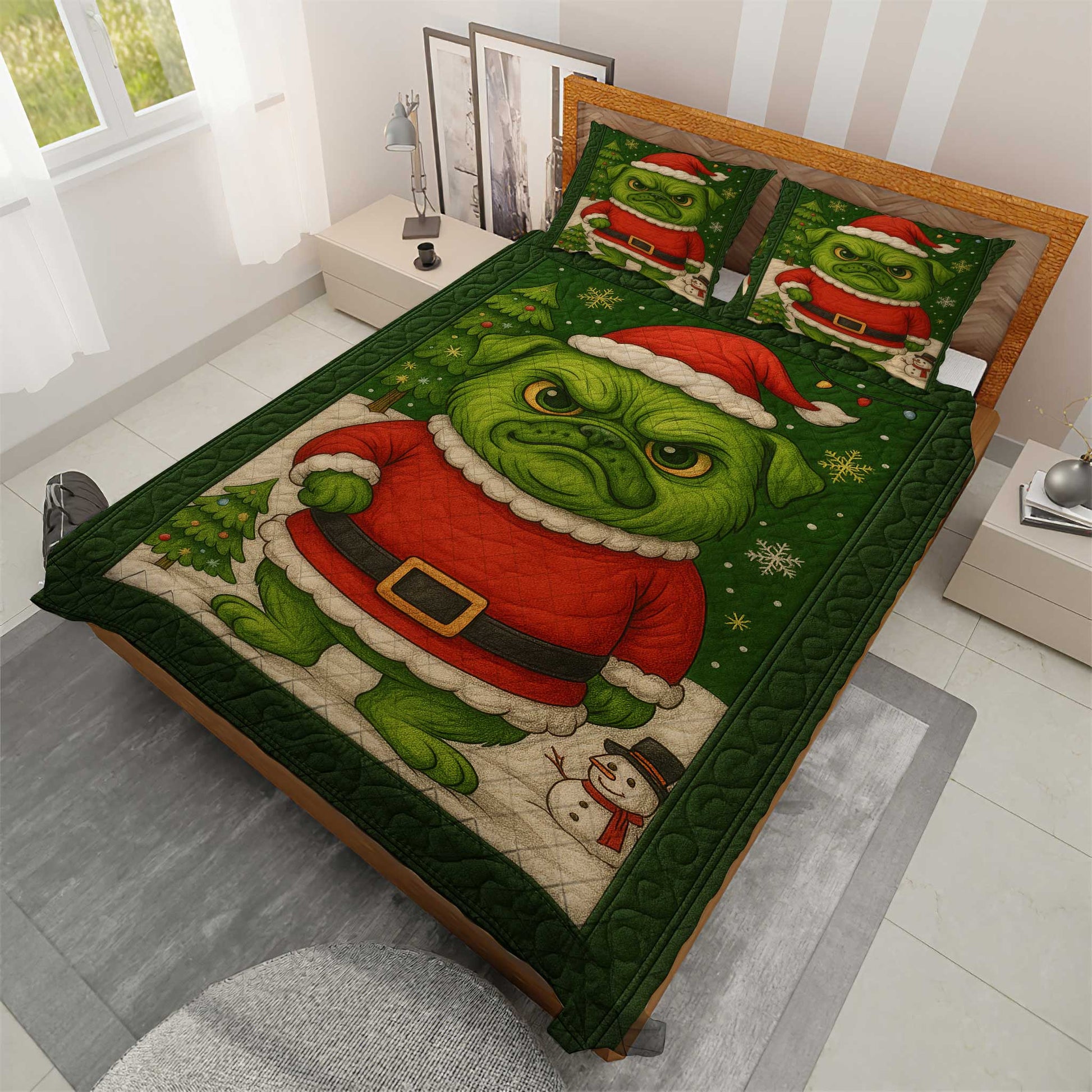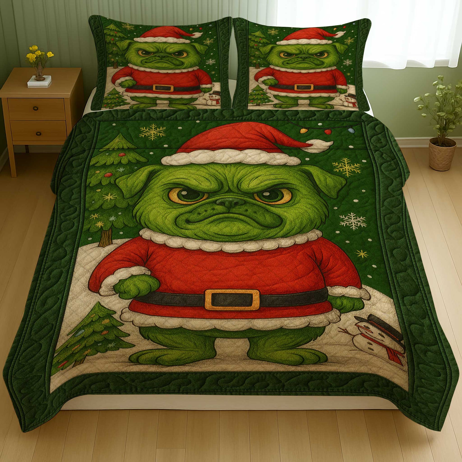 Pugmas Bedroom Decor, Funny Pug Christmas Quilt Set, Pug Xmas Bedding For Dog Lover