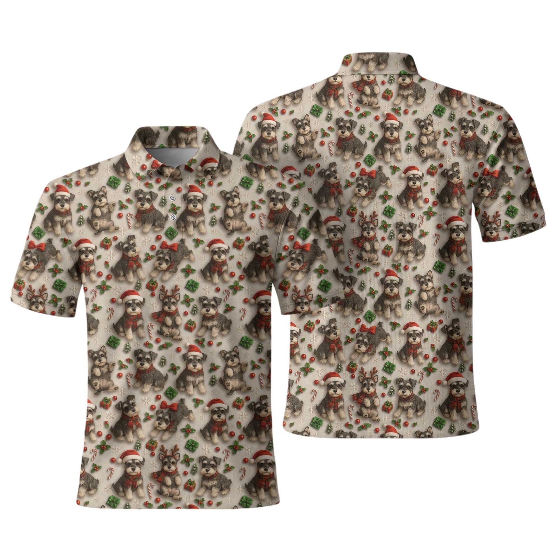 Santa Schnauzer Shirt Pattern Polo, Cute Schnauzer Christmas Shirt, Funny Holiday Schnauzer T-Shirt