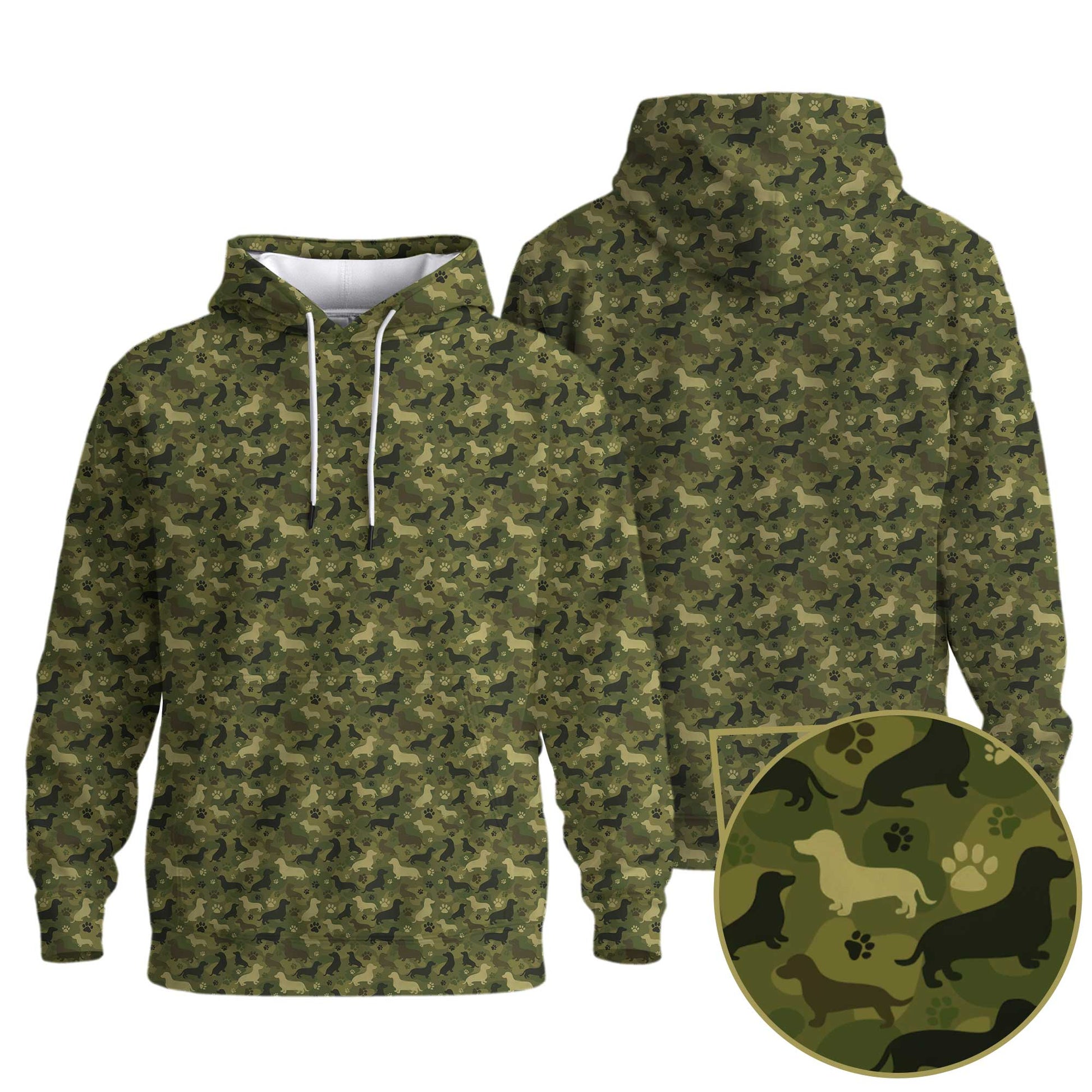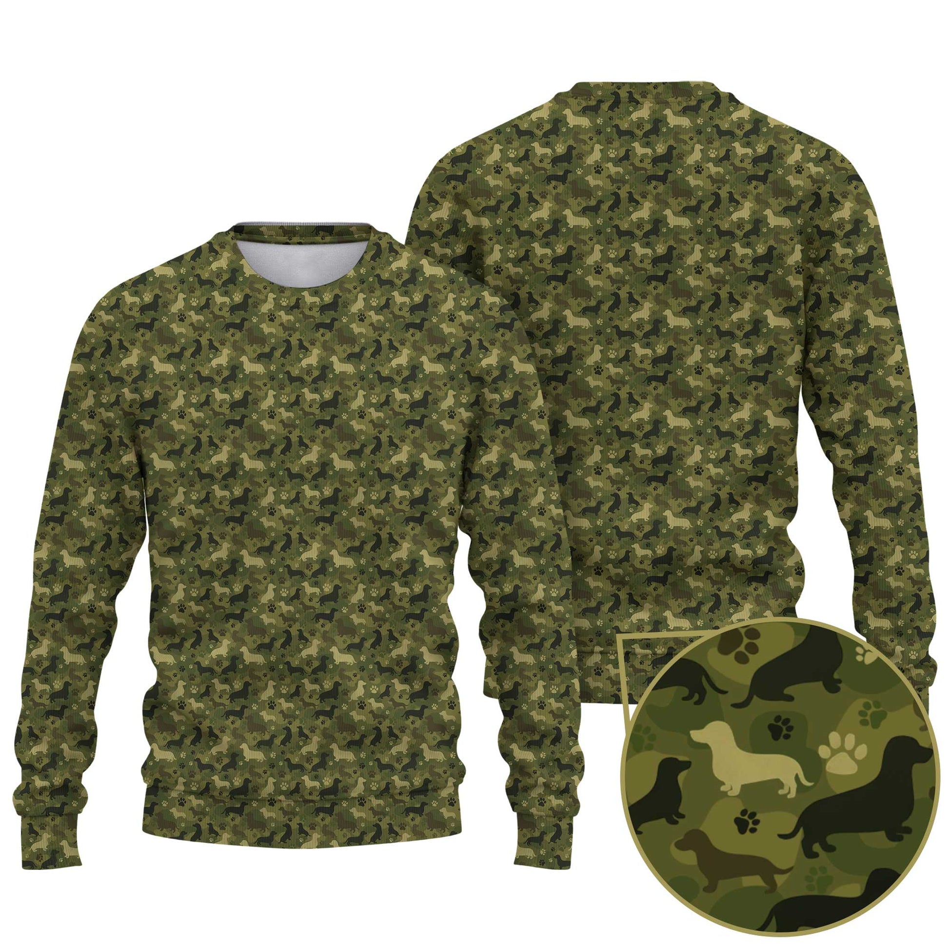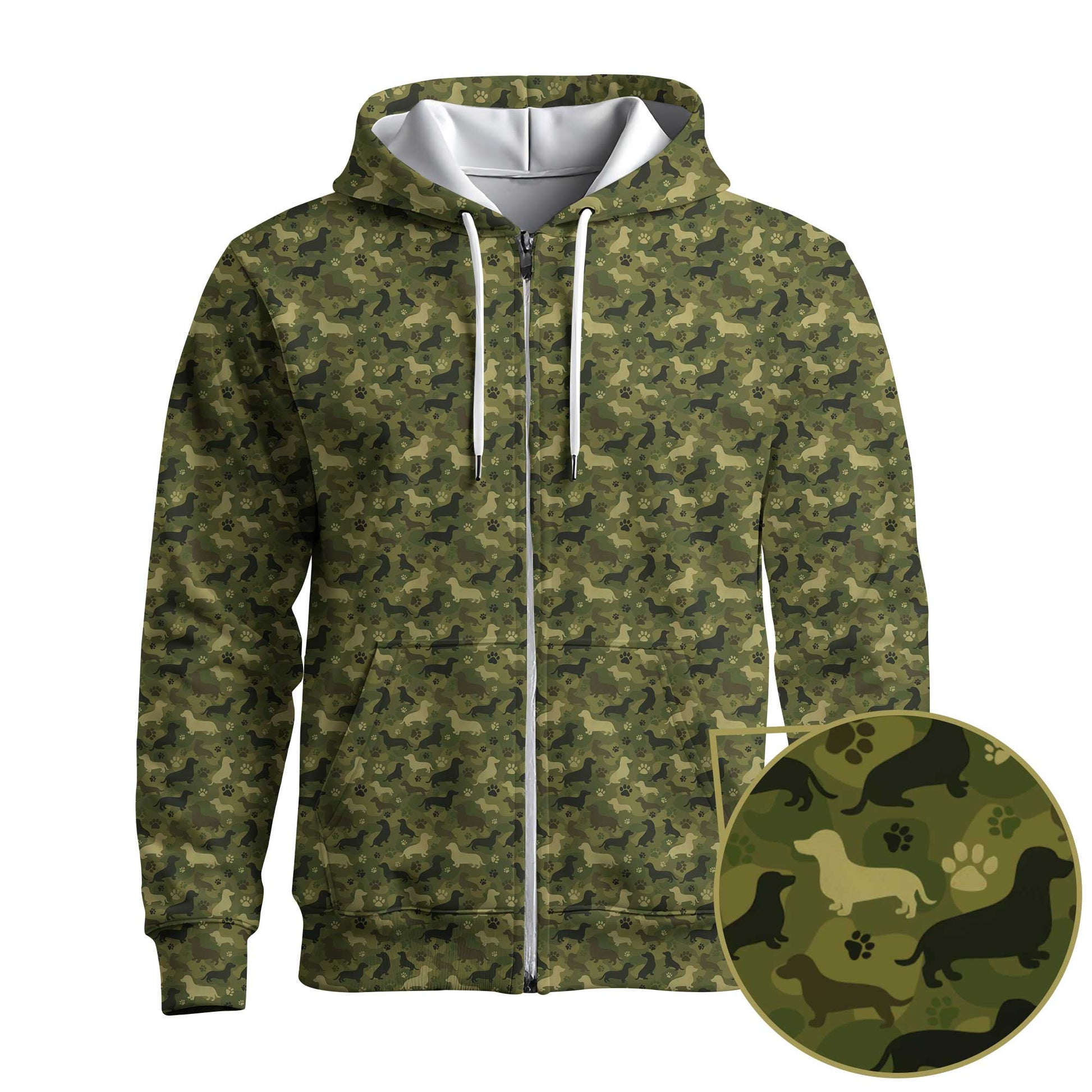 Green Camo Dog Silhouette Pattern Bomber Jacket, Shirts For Dachshunds, Dachshund Sweatshirt