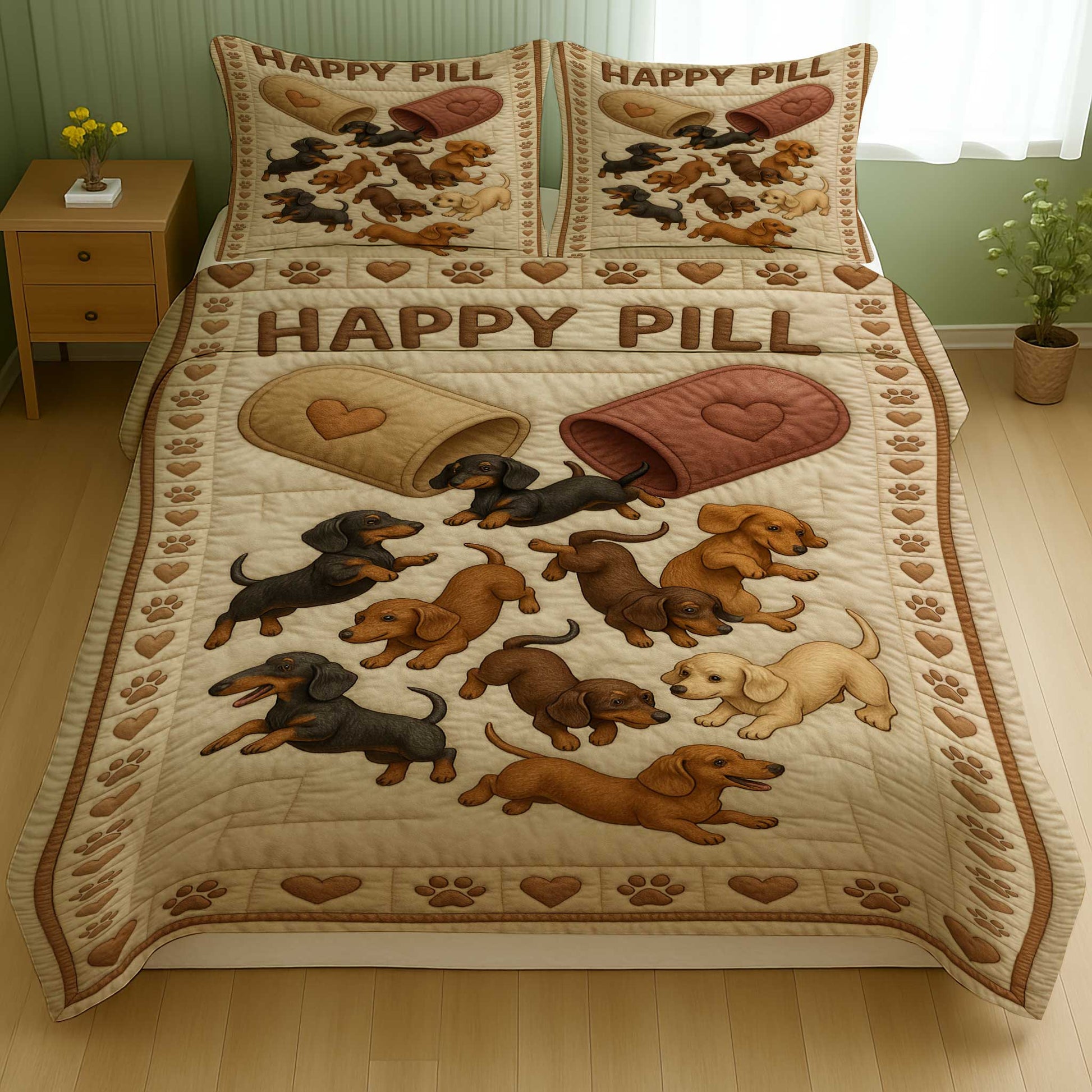 Happy Pill Quilt Set With Dachshunds, Warm Soft Bedding For Dog Lovers Bedroom Decor