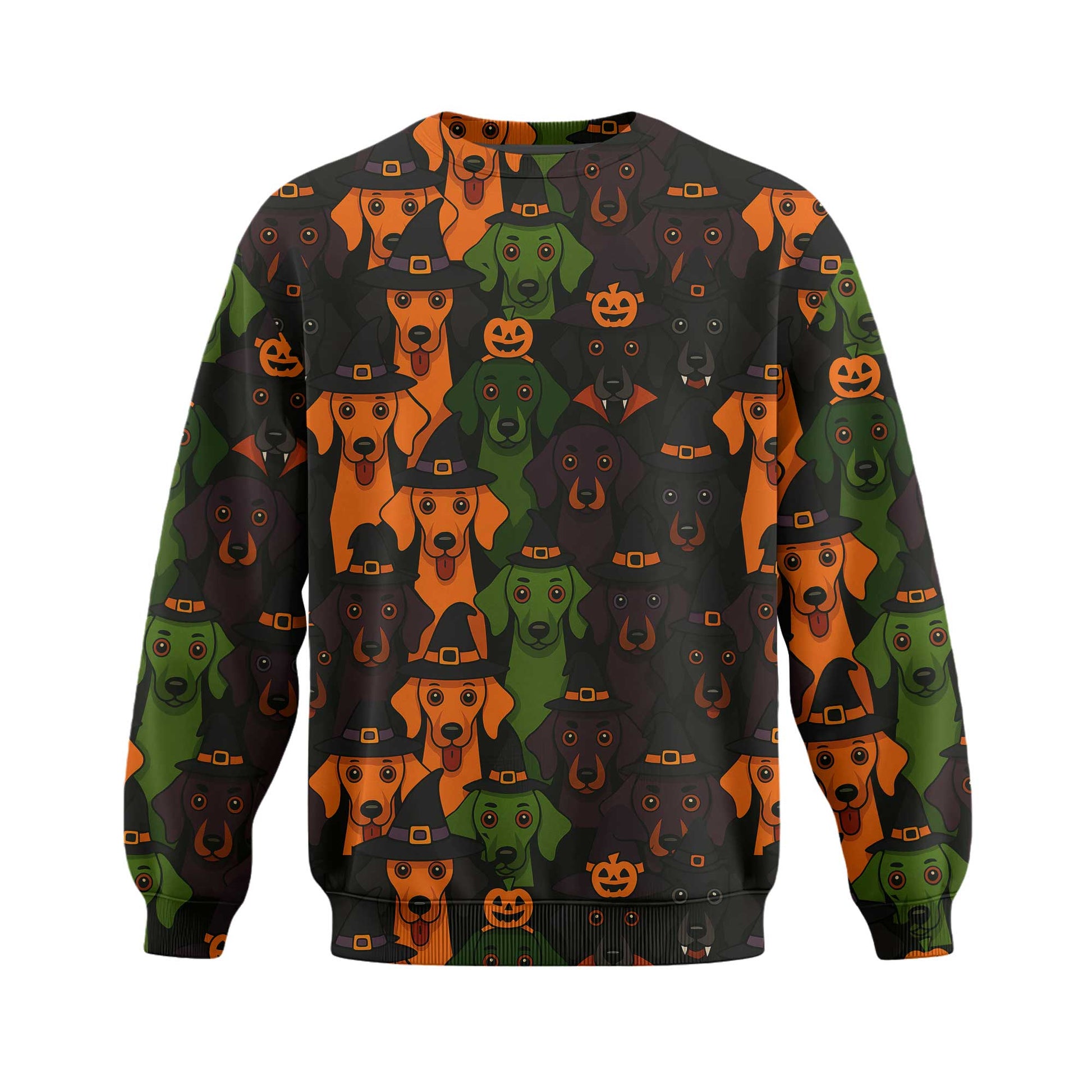 Weenie Dog Halloween With Witch Hat Print, Pattern Polos For Spooky Season, Dachshund Hoodie