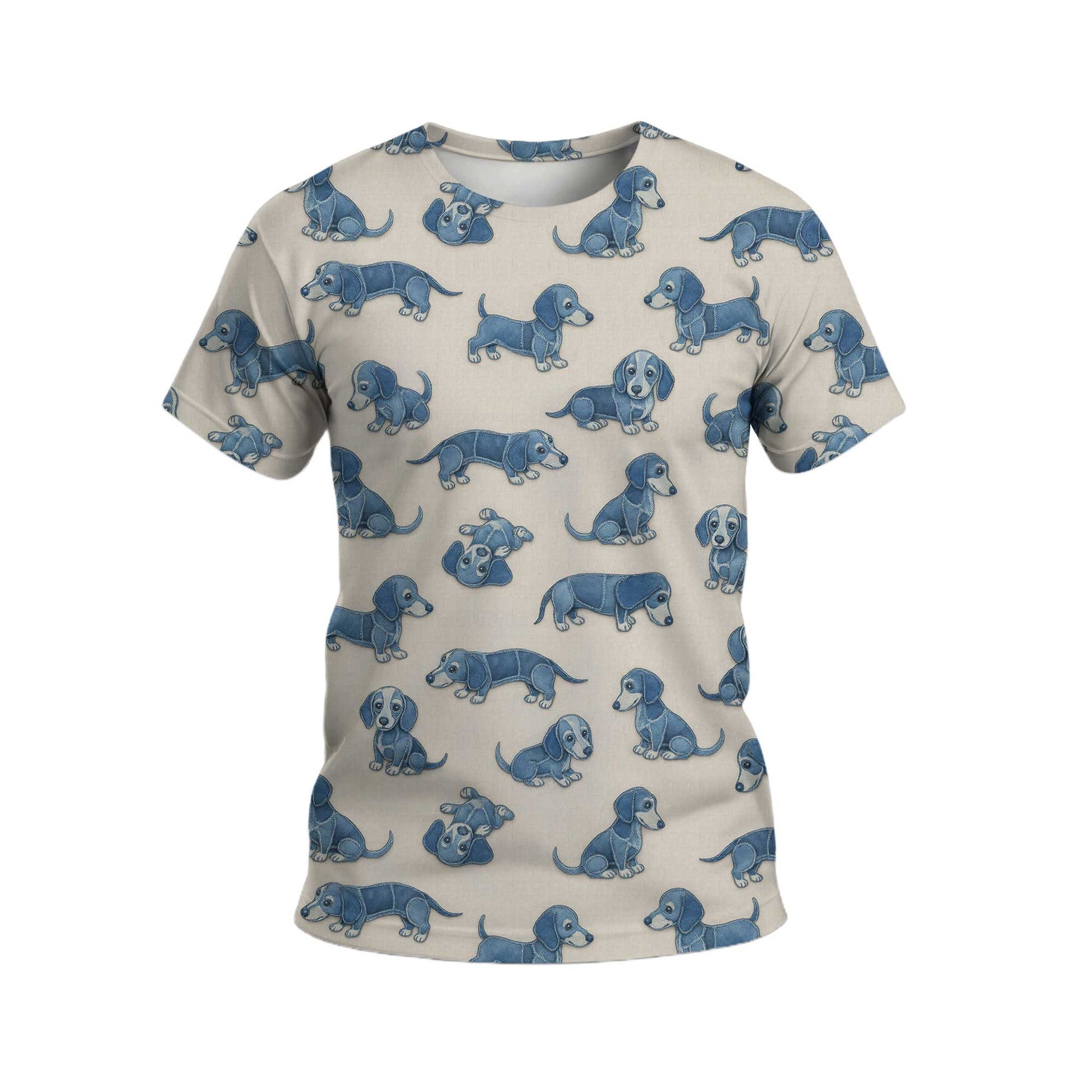 Playful Blue Dog Pattern Hawaiian Style, Wiener Dog T Shirt, Dachshund Shirt