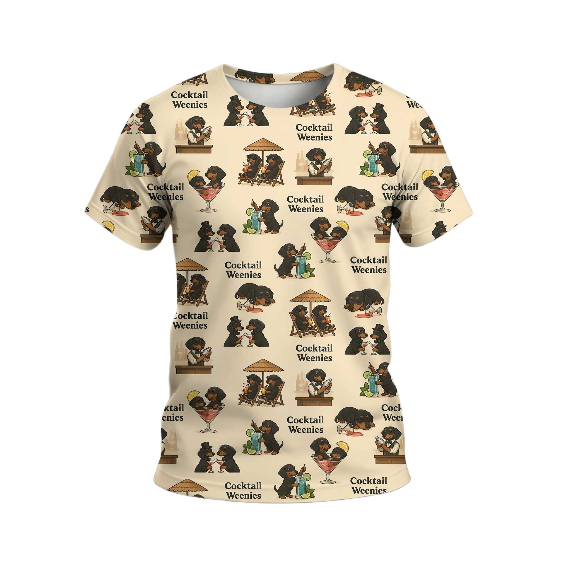 Cocktail Dachshund Pattern Lightweight Polo, Wiener Dog T Shirt, Dachshund Sweatshirt