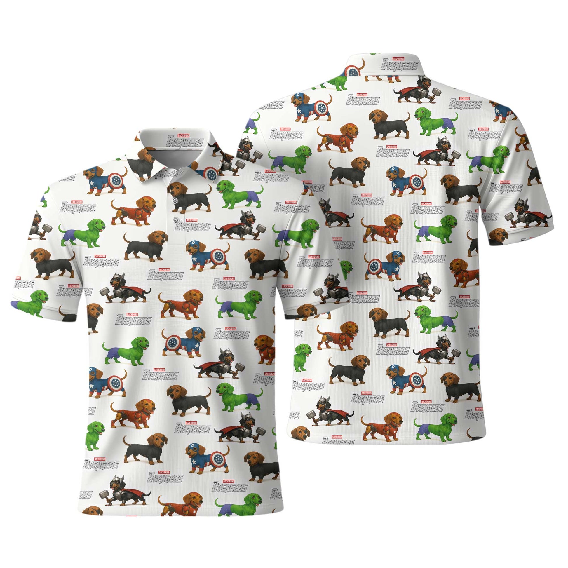 Super Hero Dachshund Pattern Polo, Wiener Dog T Shirt, Dachshund Sweatshirt